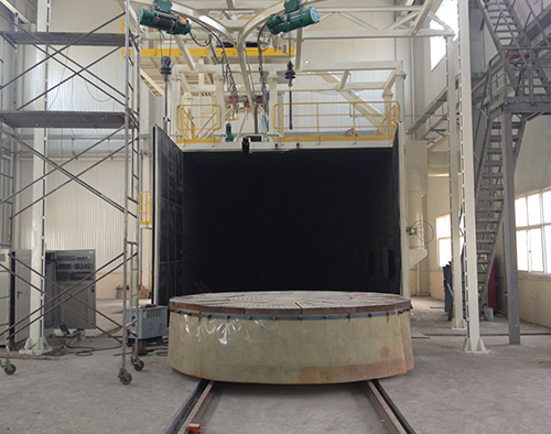 是將承載大型工件的臺車開到拋丸室內(nèi)后,關(guān)閉室體大門對工件進行拋丸清理,拋丸的同時臺車可以做回轉(zhuǎn)運動或臺車做回轉(zhuǎn)運動的同時也可做自動往復(fù)移動。改產(chǎn)品適用于各種大型鑄件,鍛件結(jié)構(gòu)件的拋丸清理。