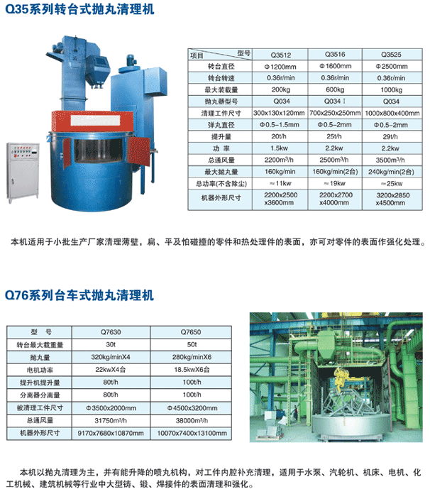 Q35系列和Q76系列的轉(zhuǎn)臺式拋丸清理機如下:
