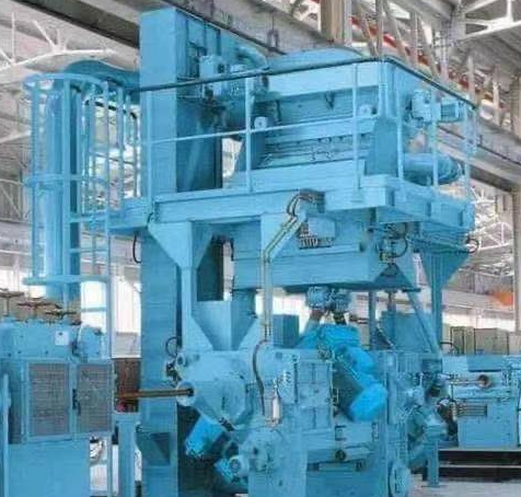 工件由輸送輥道送至封閉的拋丸清理室,利用拋丸器高速旋轉的葉輪將彈丸加速拋射至工件表面,對工件表面進行沖擊、刮削以清除工件表面的鐵銹和污物,然后利用橫掃、滾刷、收丸螺旋和高壓吹管將工件表面的積丸和浮塵吹掃干凈,由送出輥道送出,從而使鋼材達到除銹、防銹的目的。