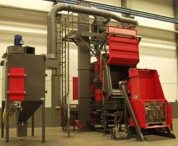 本機主要由清理室、拋丸器、提升機、螺旋送器、分離系統(tǒng)、網(wǎng)帶系統(tǒng),電器系統(tǒng)等部分組成。主要特點有
